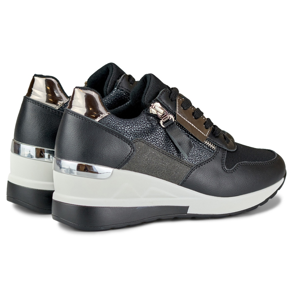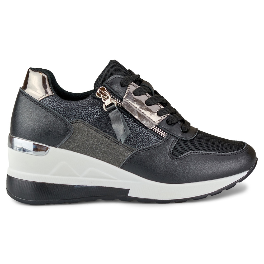 Tyylikäs musta urheilukengät Keeshoes -kokoelmasta - yhdistelmä kaupunkien mukavuutta naisellinen eleganssi. Klassinen, musta ekologinen nahka ylä- ja hienovarainen 6 cm: n alusta optisesti ohutta kuvio, joka säilyttää vakaudet ja mukavuuden. Pitsi -UP -viimeistely antaa sinun sovittaa kengän jalkaan, ja pyöreä nenä lisää universaalin hahmon.