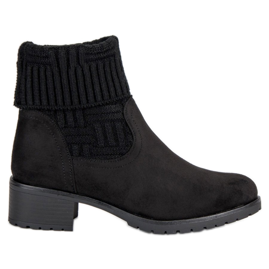 Tyylikkäät naisten mustat Seastar-nilkkurit ovat täydellisiä jalkineita syksyn ja talven kylmiin päiviin. Ne on valmistettu ekologisesta mokkanahasta, ja niissä yhdistyvät eleganssi ja toimivuus. Saappaissa on slip-on muotoilu, jonka ansiosta ne on helppo pukea jalkaan, ja niiden erittäin muodikas elementti - joustava, neulottu päällinen - lisää niihin omaperäisyyttä.