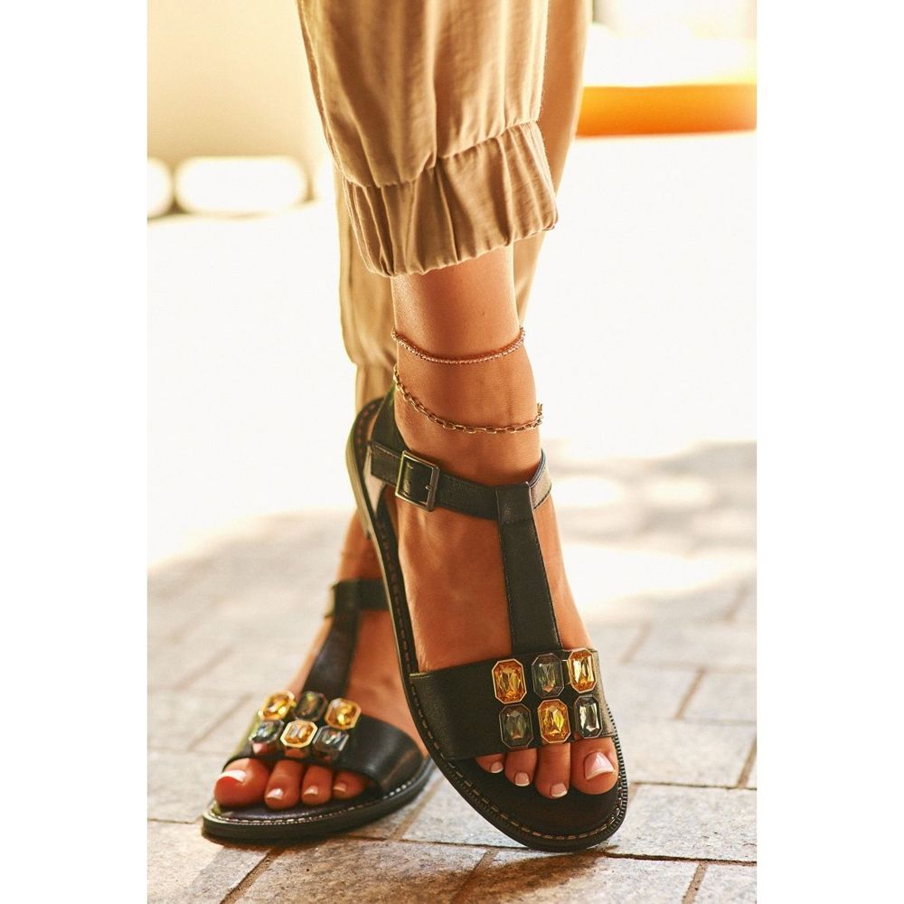 S.Barski Tyylikkäät naisten sandaalit koristeellisilla yksityiskohdilla S.Barski KV27-030 Musta