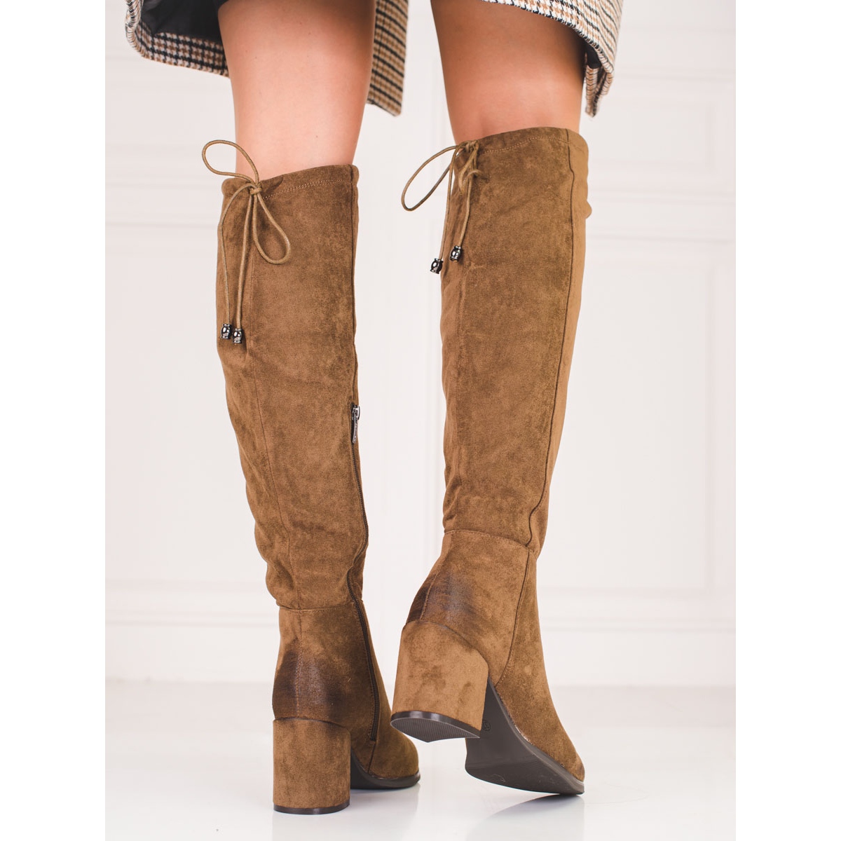 Tyylikkäät naisten Shelovet-saappaat ekologisesta mokkanahkasta ruskea