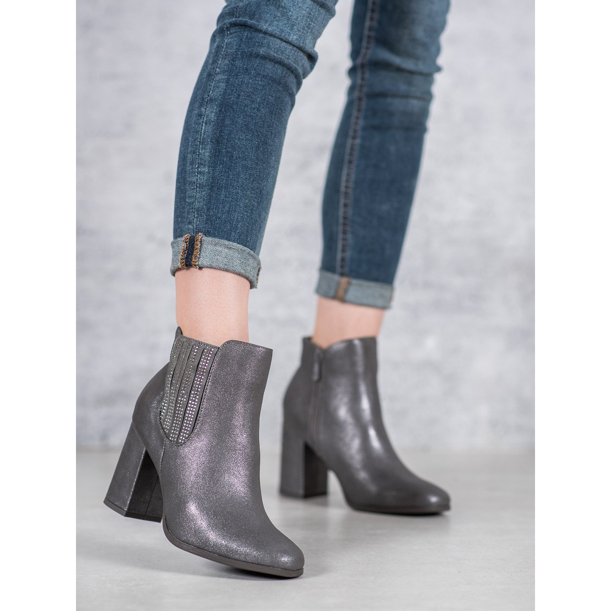 Nämä korkealaatuisesta ekologisesta nahasta valmistetut nilkkurit yhdistävät estetiikan ja mukavuuden. Sisäänrakennetun ja jäykistetyn kantapään ja pehmeän kangaspohjallisen ansiosta ne antavat riittävän tuen jaloille, mikä tekee niistä erinomaisen valinnan kylmiin syys- ja talvipäiviin. 8,5 cm:n koronkorkeus saa siluetin näyttämään ohuemmalta ja tarjoaa samalla käyttömukavuutta.