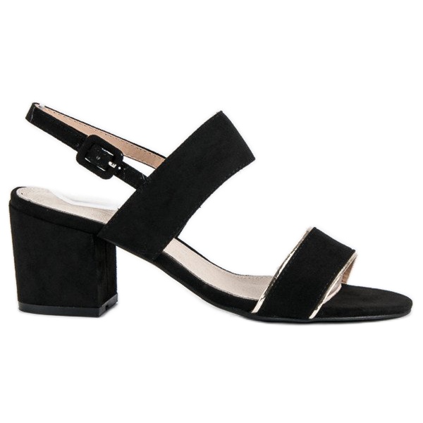 Ekologisesta nahasta valmistettu pohjallinen takaa käyttömukavuuden ja nenän puute tekee niistä kevyet. Hallitseva musta väri saa nämä sandaalit sopivaksi niin arkeen kuin muodollisempiin asuihin.