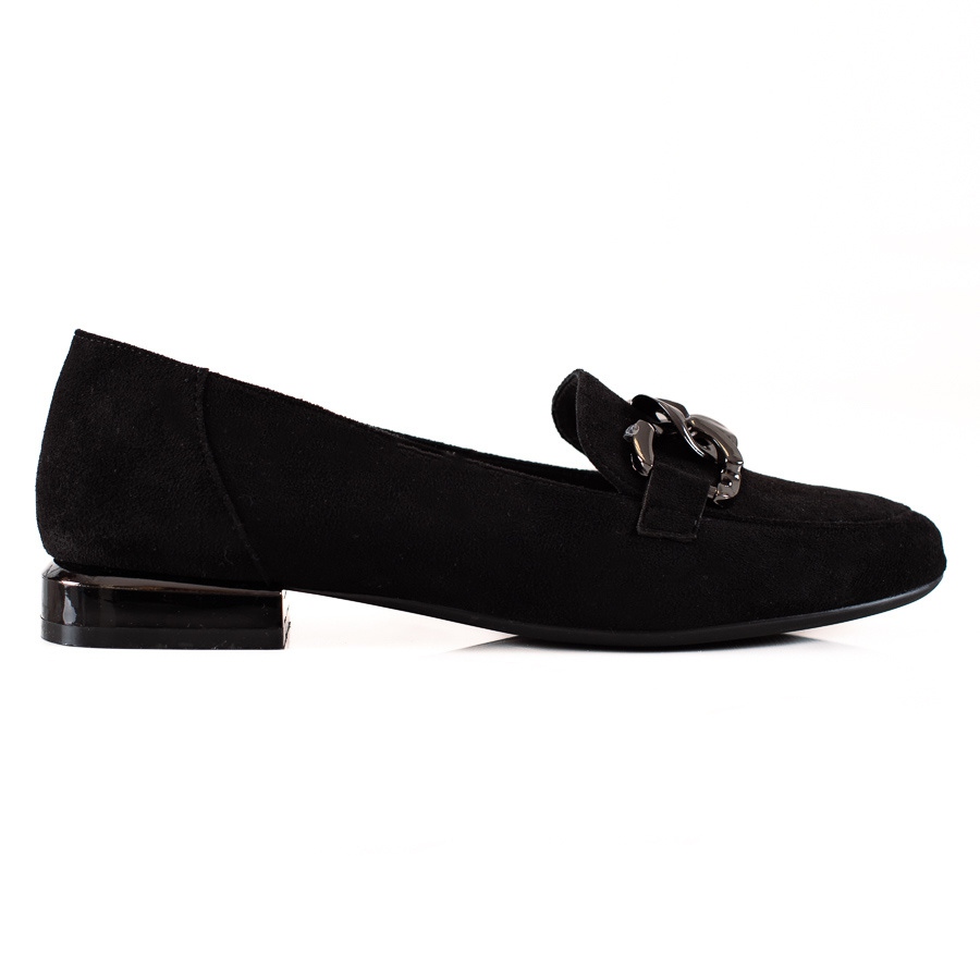 Tyylikkäät mustat Sergio Leonen mokasiinit ovat täydellinen valinta eleganssia ja mukavuutta arvostaville naisille. Nämä korkealaatuisesta mokkanahajäljitelmästä valmistetut kengät herättävät huomion minimalistisella, klassisella muotoilullaan, joka sopii täydellisesti arki- ja muodollisempiin tyyleihin.
