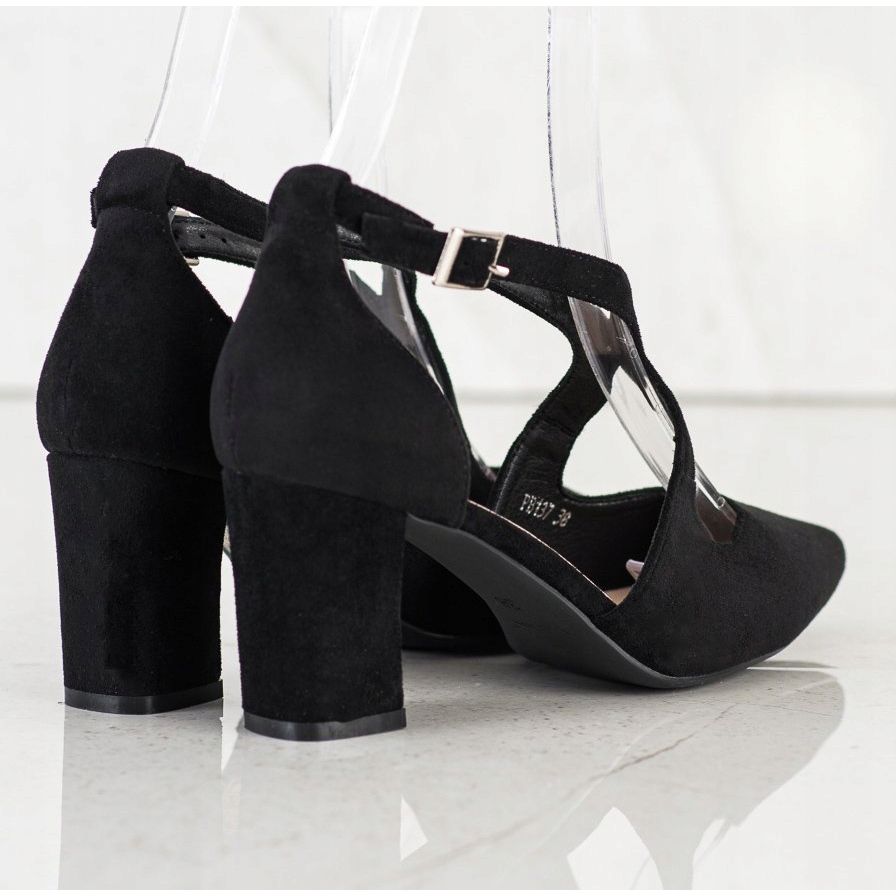 Korkealaatuisesta ekologisesta mokkanahkasta valmistetut pumput tarjoavat paitsi elegantin ulkonäön myös käyttömukavuuden. Rakennettu, pyöristetty kärki ja pehmeä kantapää suojaavat jalkojasi, ja paljas keskiosa, jossa on soljella kudottu hihna, antaa niille hienovaraista keveyttä. Leveä 7 cm korkea kantapää lisää eleganssia ja vakautta, jolloin voit liikkua mukavasti koko yön.