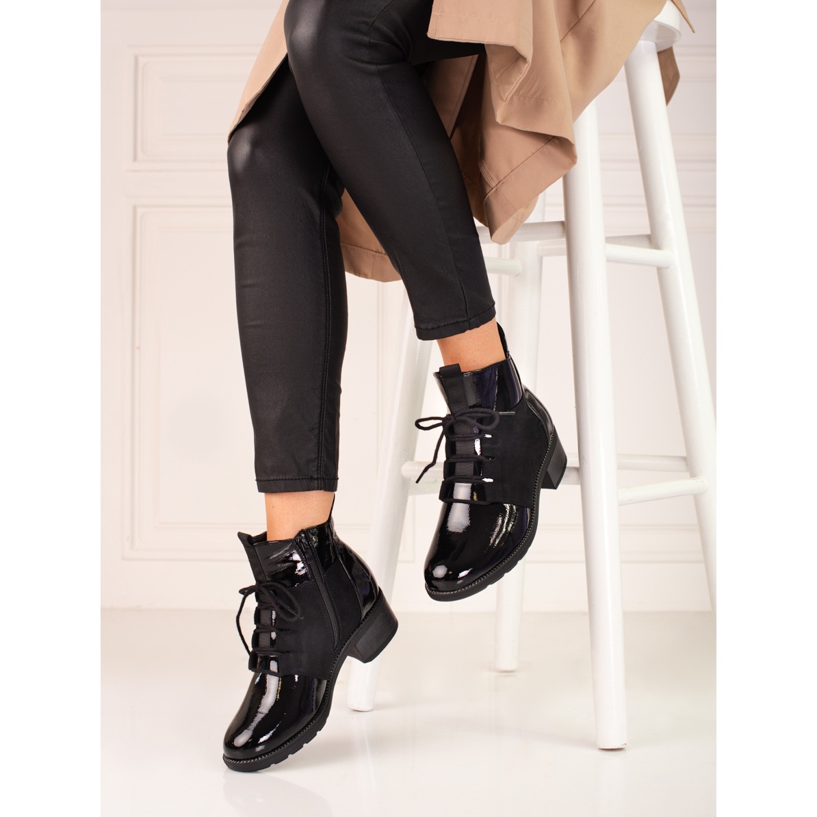 Yksityiskohdat: Tyylikkäät Shelovet-nauhasaappaat naisille musta