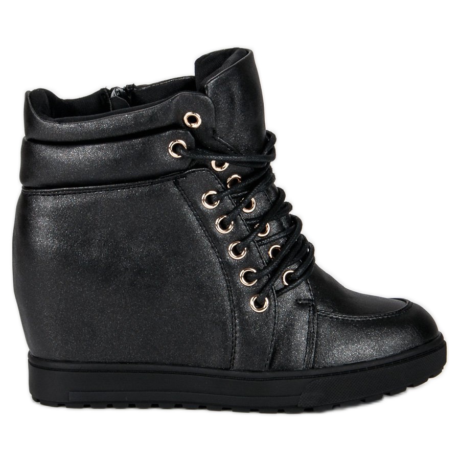 Tennarit on valmistettu korkealaatuisesta tekstiilimateriaalista, jonka pinta on kiiltävä, mikä antaa niille ainutlaatuisen luonteen. Vetoketjun lisäyksen ja kestävien nauhojen säädön ansiosta näissä kengissä juokseminen on puhdasta nautintoa. 9 cm korkea piilokiilakorko ei ainoastaan pidennä jalkoja optisesti, vaan takaa myös käyttömukavuuden, mikä tekee niistä ihanteellisen valinnan jokapäiväiseen käyttöön.