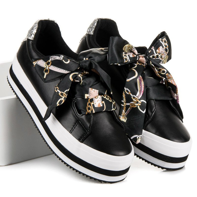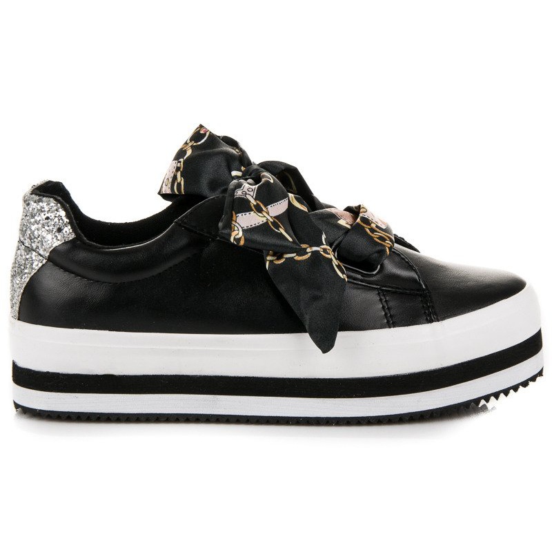 Tyylikkäät mustat Vices platform -lenkkarit ovat täydellinen valinta naisille, jotka arvostavat sekä mukavuutta että muodikasta muotoilua. Valmistettu ekologisesta nahasta, ne ovat kestäviä ja helppohoitoisia. Matalissa tennareissa on pyöreä kärki, joka antaa niille urheilullisen luonteen ja nauhakiinnitys varmistaa täydellisen istuvuuden jalkaan.