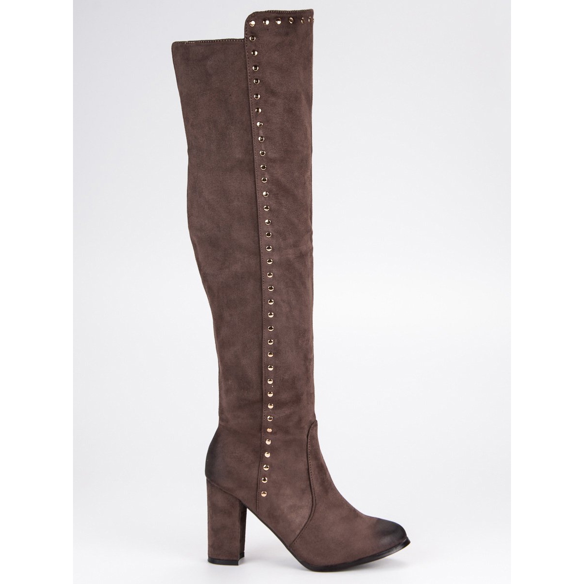 Tyylikkäät ruskeat VINCEZA mokkanahkasaappaat ovat täydellinen valinta naisille, jotka haluavat korostaa luokkaansa ja ainutlaatuista tyyliään. Nämä erittäin muodikkaat saappaat ulottuvat polven yläpuolelle, mikä saa jalat näyttämään pidemmiltä ja ohuemmilta. Ne on valmistettu korkealaatuisesta ekologisesta mokkanahkasta, ja niissä yhdistyvät eleganssi ja mukavuus.