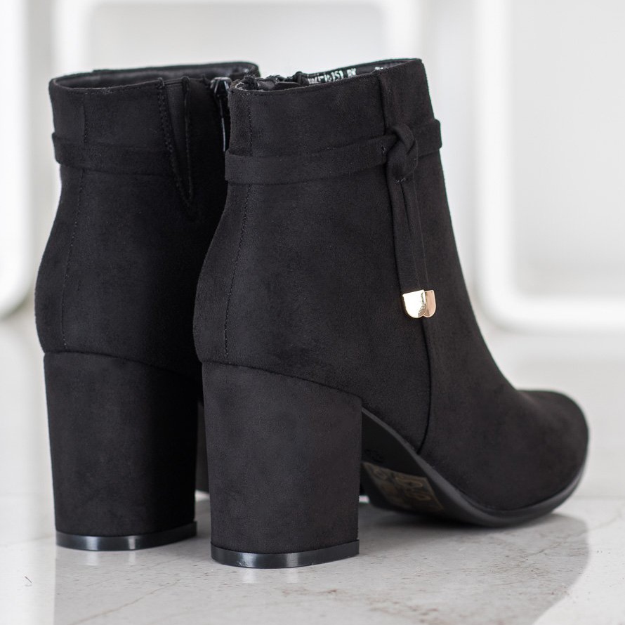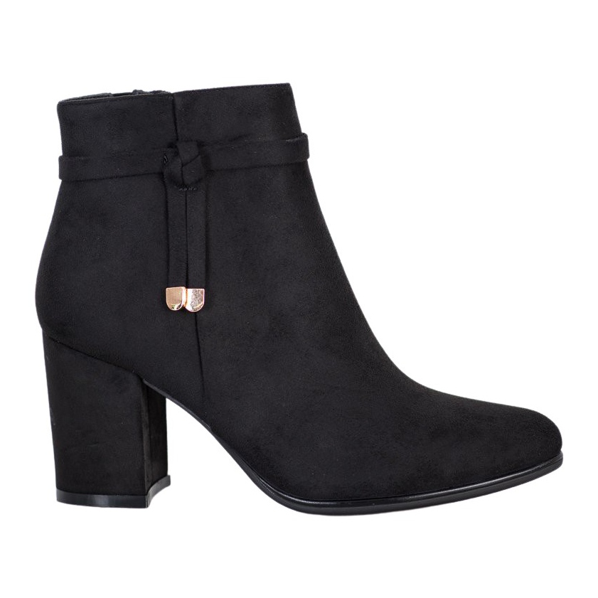 Näissä yksityiskohtiin kiinnitetyissä saappaissa on pyöreä kärki ja rakennettu, jäykistetty kantapää, mikä takaa paitsi esteettisyyden myös mukavuuden. Nilkan yläpuolelle ulottuva yläkorkeus ja 7,5 cm kantapää antavat siluetille tyylikkään ilmeen, joka sopii täydellisesti juhliin tai iltajuhliin.