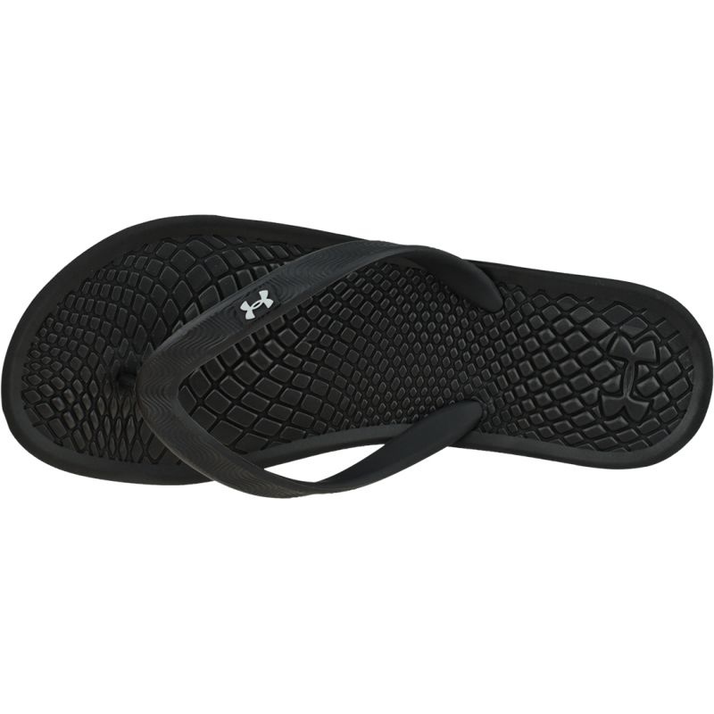 Under Armour W Atlantic Dune TW 3022716-002 varvastossut tyylikkäässä mustassa värissä ovat täydellinen valinta jokaiselle mukavuutta ja tyyliä arvostavalle naiselle. Nämä naisten varvastossut on suunniteltu käyttömukavuutta ajatellen, joten ne sopivat täydellisesti sekä rentoutumiseen rannalla että jokapäiväiseen kesäretkiin.