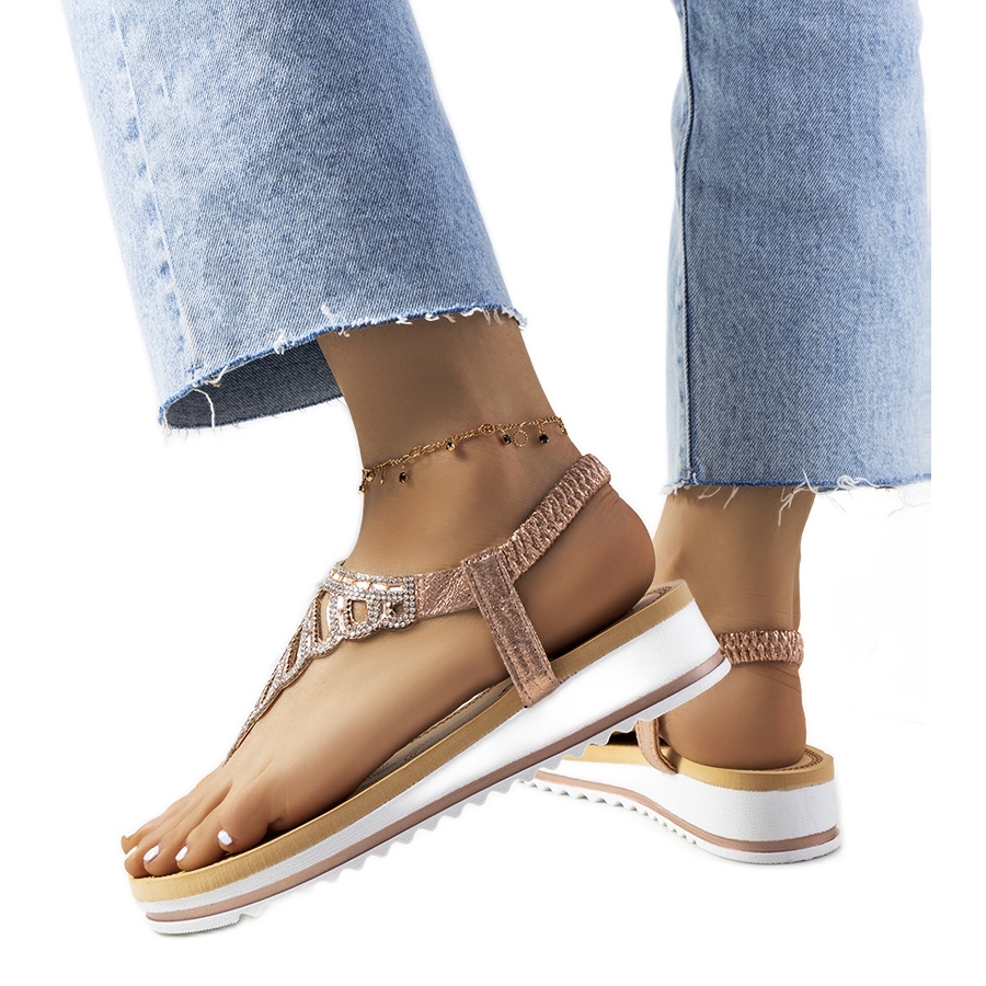 Niiden kaunis samppanjan vaaleanpunainen sävy ja hienovaraiset koristeet zirkonien ja strassien muodossa antavat heille ainutlaatuisen kiillon, jotka sopivat täydellisesti kesäasuihin. Lavan korkeus 3,5 cm varmistaa vakauden ja samalla optisesti pidentää jalkoja.