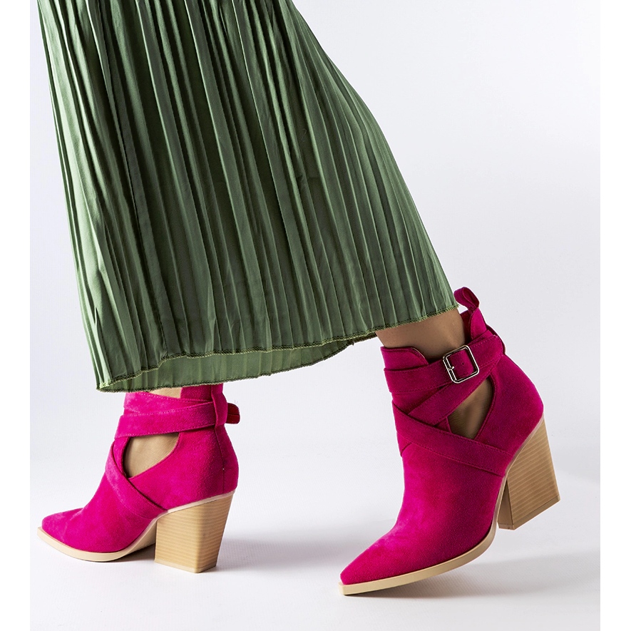 Niiden innovatiivinen muotoilu, joka on asennettu kiinteään pylvääseen, ei ainoastaan takaa käyttömukavuutta, vaan myös lisää luonnetta mihin tahansa tyyliin. 8 cm:n korkokenkä saa jokaisen naisen tuntemaan olonsa tyylikkääksi ja itsevarmaksi kaikissa tilanteissa. Fuxian pinkki väri on katseenvangitsija ja saa saappaat sopivat täydellisesti sekä arki- että muodollisempiin asuihin.