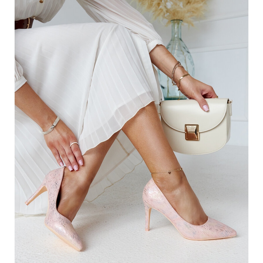Inna marka Vaaleanpunaiset metalliset korkokengät, joissa nahkainen Gantier-sisäosa vaaleanpunainen