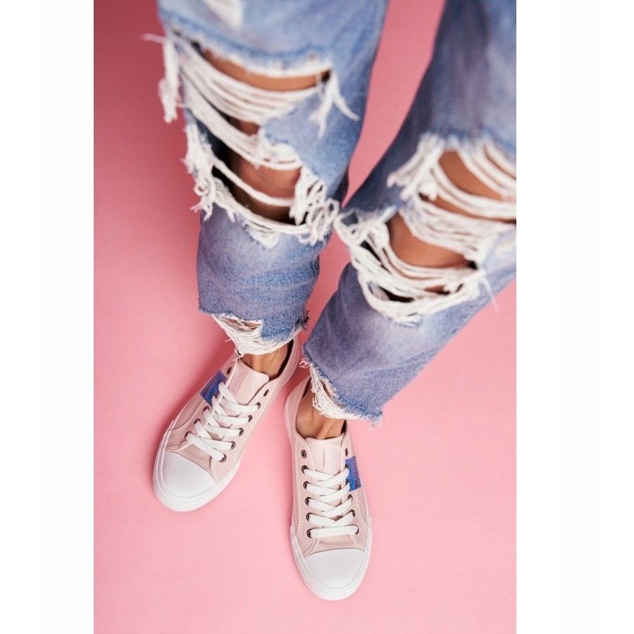 Vaaleanpunaiset harjakattoiset lenkkarit Big Star FF274033 ovat täydellinen valinta naisille, jotka haluavat yhdistää muodikkaan lookin käyttömukavuuteen. Näille ainutlaatuisille kengille on ominaista keveys ja omaperäinen muotoilu, mikä tekee niistä täydellisen täydennyksen mihin tahansa kevät-kesän tyyliin.
