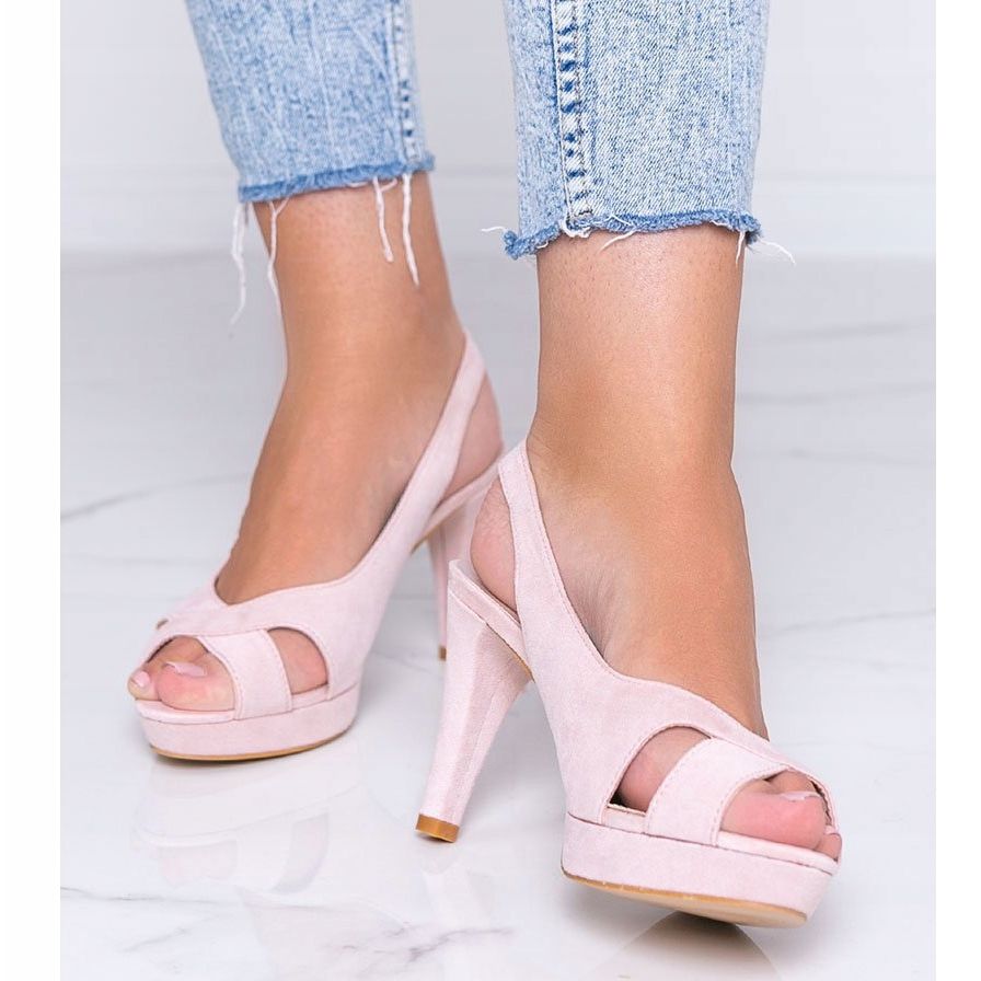 Yksityiskohdat: Vaaleanpunaiset sandaalit Big Girl stiletto -kantapäässä vaaleanpunainen