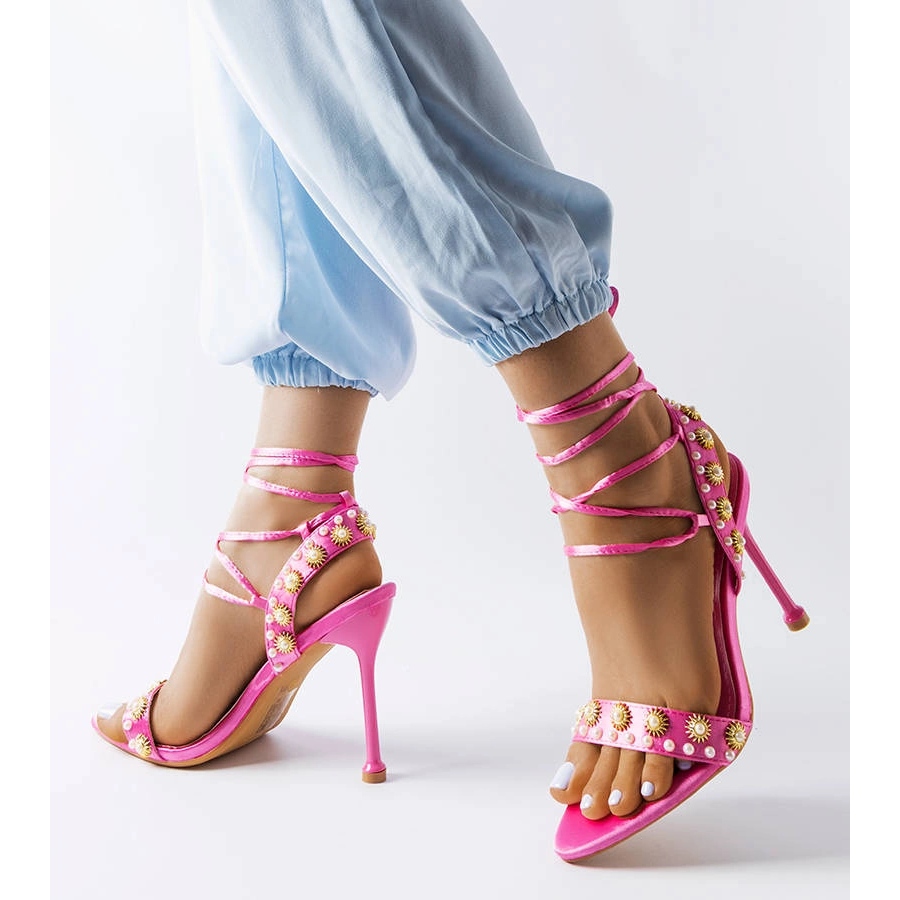 Vaaleanpunaiset sandaalit koristeltu Grange-helmillä