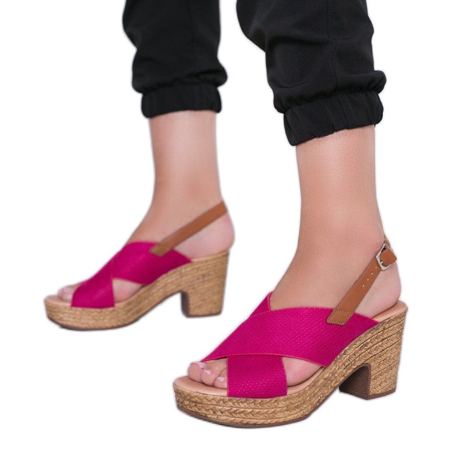 Yksityiskohdat: Vaaleanpunaiset sandaalit Magic Woman -postauksessa vaaleanpunainen
