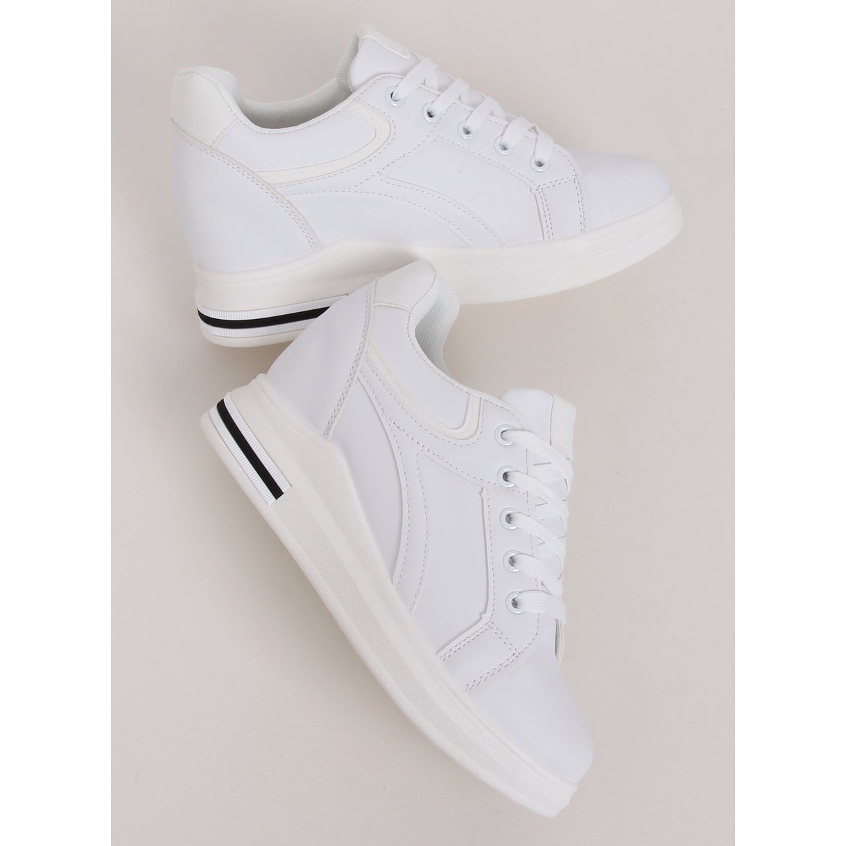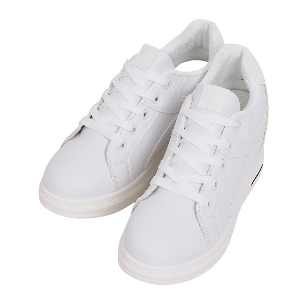 Löydä mukavuus ja tyyli valkoisilla BY-0370 piilokiilalenkkarilla! Nämä muodikkaat naisten nauhalliset tennarit ovat täydellinen valinta naisille, jotka haluavat yhdistää mukavuuden ja eleganssin. 8 cm piilotettu kiila lisää hienovaraista korkeutta ja varmistaa mukavuuden jokapäiväisessä toiminnassa.