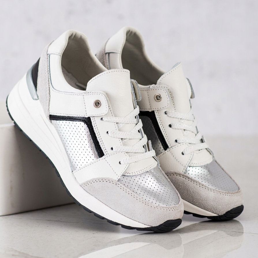 Yksityiskohdat: Goodin Valkoiset ja hopeiset nahkaiset lenkkarit valkoinen musta hopea harmaa