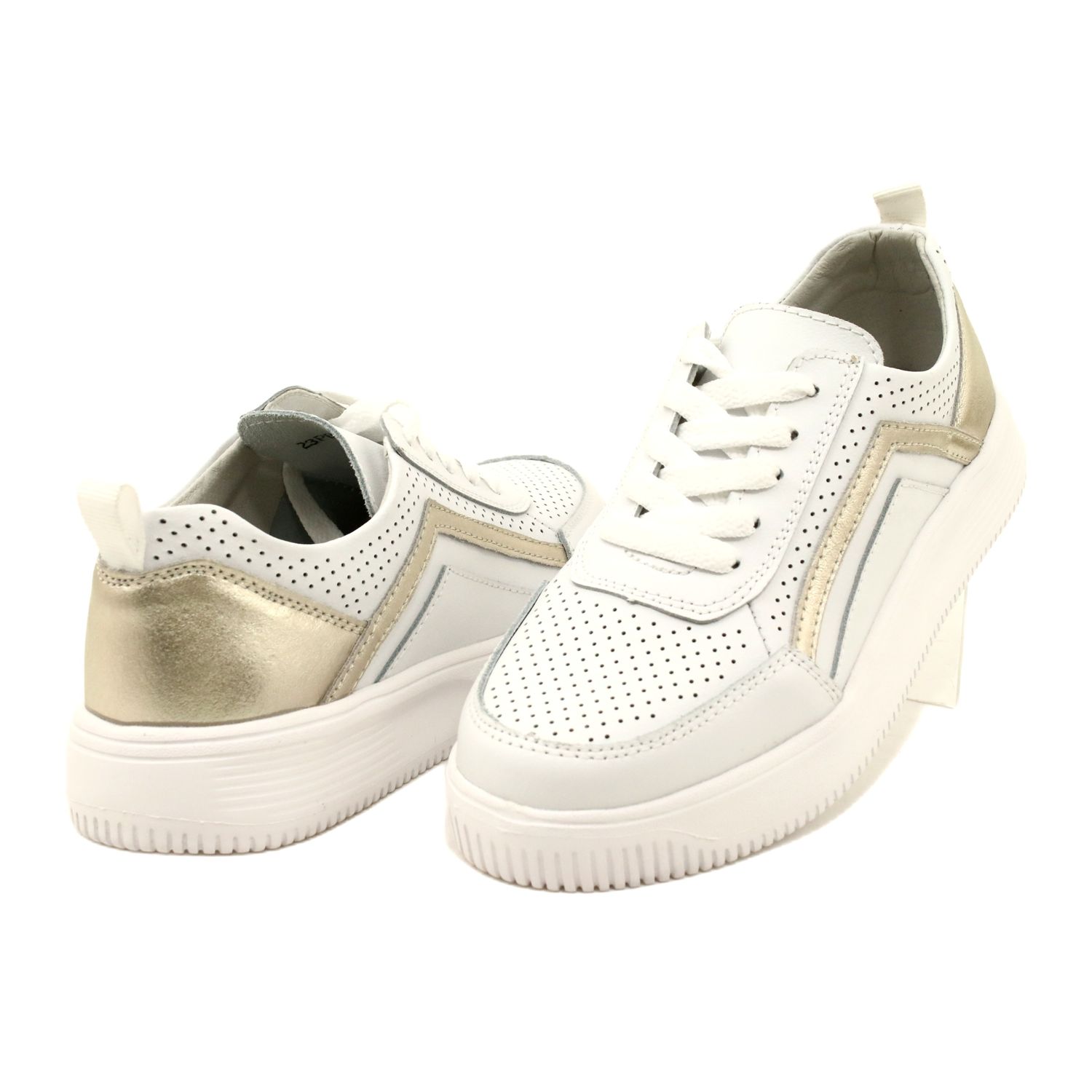 Valkoiset ja kullan nahkaiset lenkkarit Sidotut tapahtuma 23pb08-5389-eleganssi kohtaa mukavuutta
