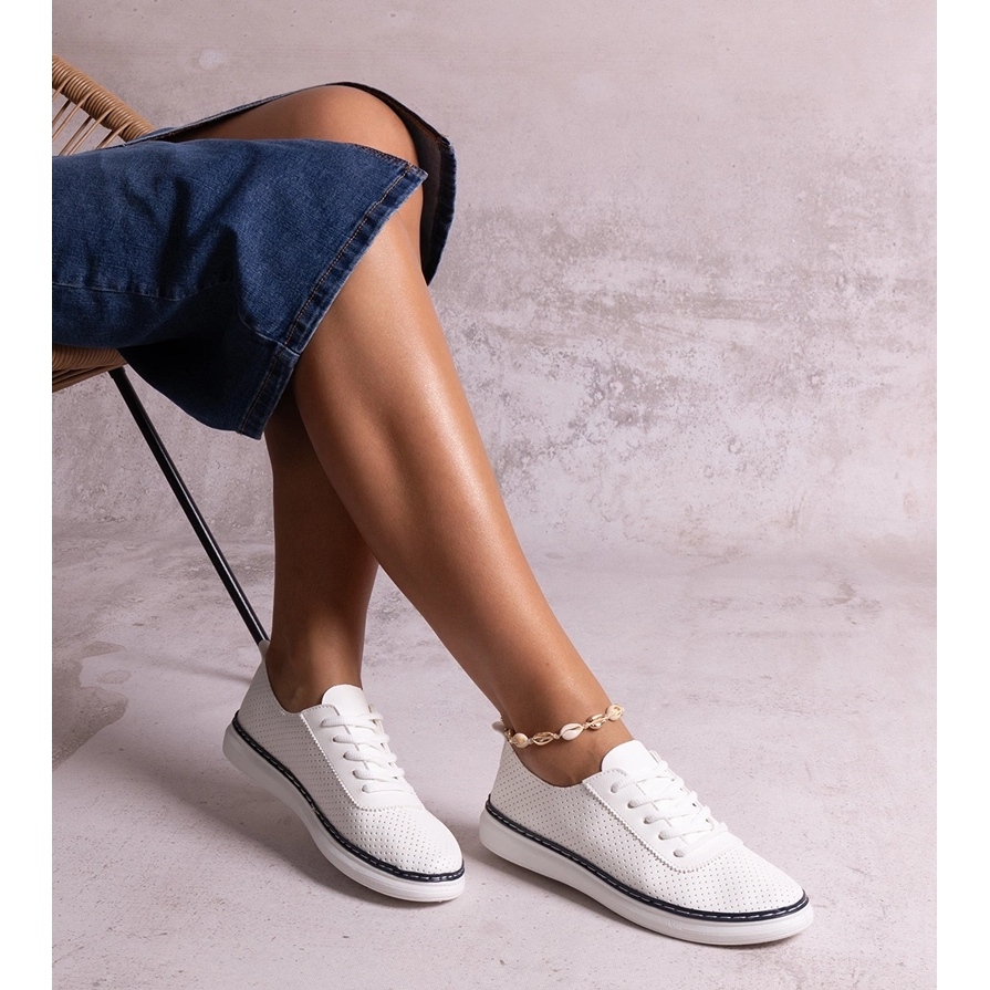 Löydä ainutlaatuinen tyyli valkoisilla ja merivoimien sinisellä avoimella Biserka -lenkkarilla, jotka ovat täydellinen yhdistelmä tyylikkyyttä ja mukavuutta. Nämä trendit lenkkarit, jotka ovat ihanteellisia nuorelle sukupolvelle, erottuvat pitsi -lukkoon, pyöreään nenään ja matalalla suunnittelulla, joka antaa heille modernin hahmon.