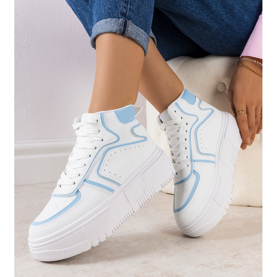 Etsitkö täydellisiä kenkiä, joissa yhdistyvät muodikas muotoilu ja mukavuus? Valkoiset ja siniset korkeat Zetta-lenkkarit ovat täydellinen valinta jokaiselle tyyliä ja mukavuutta arvostavalle naiselle. Päällisen korkea leikkaus ei vain suojaa nilkkaa, vaan sopii myös täydellisesti eri tyyleihin, arki-urheiluun.