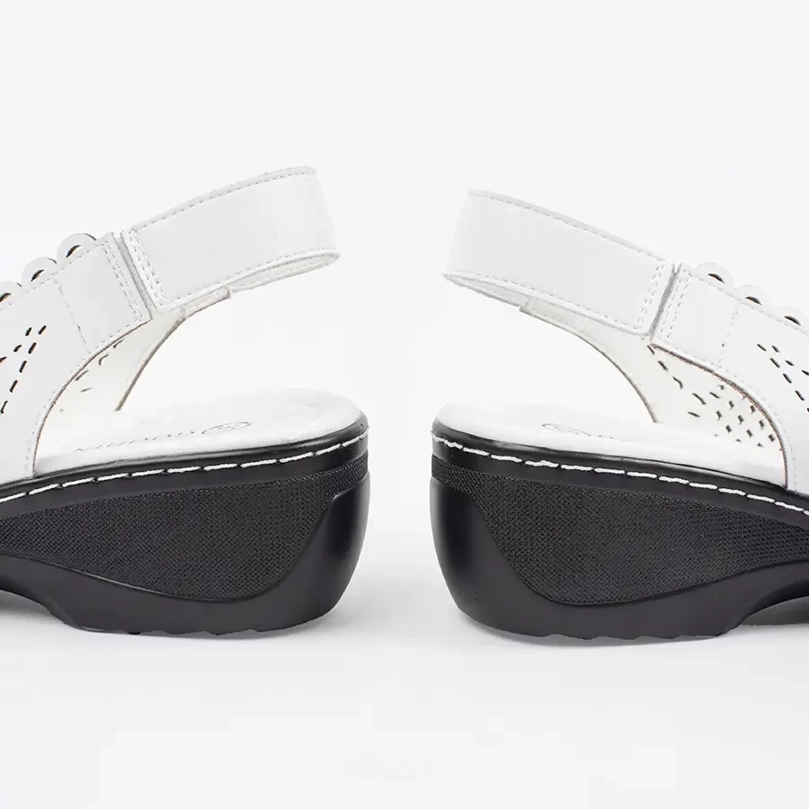 Löydä ainutlaatuinen tyyli ja mukavuus Goodin -tuotemerkin valkoisten kiilan sandaalien ansiosta! Nämä klassiset sandaalit ovat loistava valinta jokaiselle naiselle, joka haluaa nauttia muodikkaasta ilmeestä lämpiminä päivinä. Korkealaatuisesta ekologisesta nahasta valmistettu ne yhdistävät estetiikan ekologisiin arvoihin.