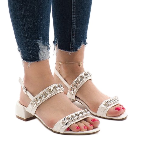 Yksityiskohdat: Valkoiset korkokengät sandaalit 77-15 valkoinen