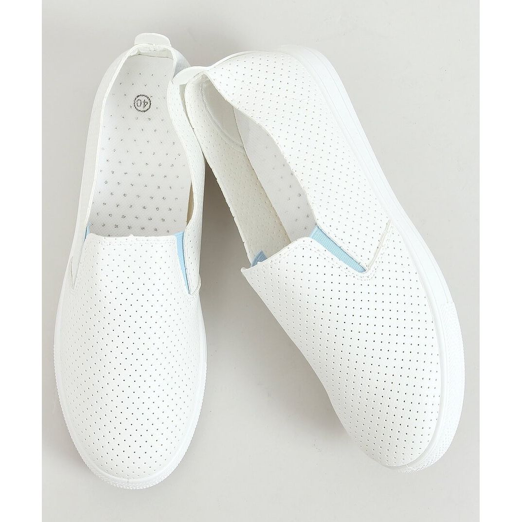 Esittelemme valkoiset LA45 Blue slip-on lenkkarit sinisillä aksenteilla - täydellinen lisä kevään vaatekaappiisi! Näille tyylikkäille naisten tennareille on ominaista moderni muotoilu ja ne täydentävät täydellisesti rentoa tyyliä. Valmistettu herkästä ekologisesta nahasta, jossa on harjakattoinen rakenne, ne takaavat paitsi muodikkaan ulkonäön myös käyttömukavuuden.