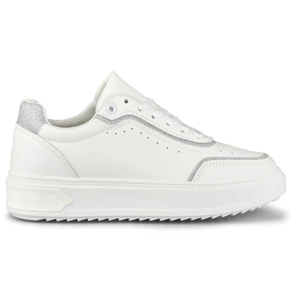 Klassiset, naiselliset ja mukavat valkoiset lenkkarit, joilla on hienovaraiset hopeaa aksentit, ovat kevään/kesäkauden välttämättömät. Valmistettu korkealaatuisesta ekologisesta nahasta, vakaalla 2,5 cm: n alustalla, yhdistä urheiluhahmo muodikkaaseen kaupunkimuotoon. Täydellinen päivittäin - farkut, mekot tai rento hame.