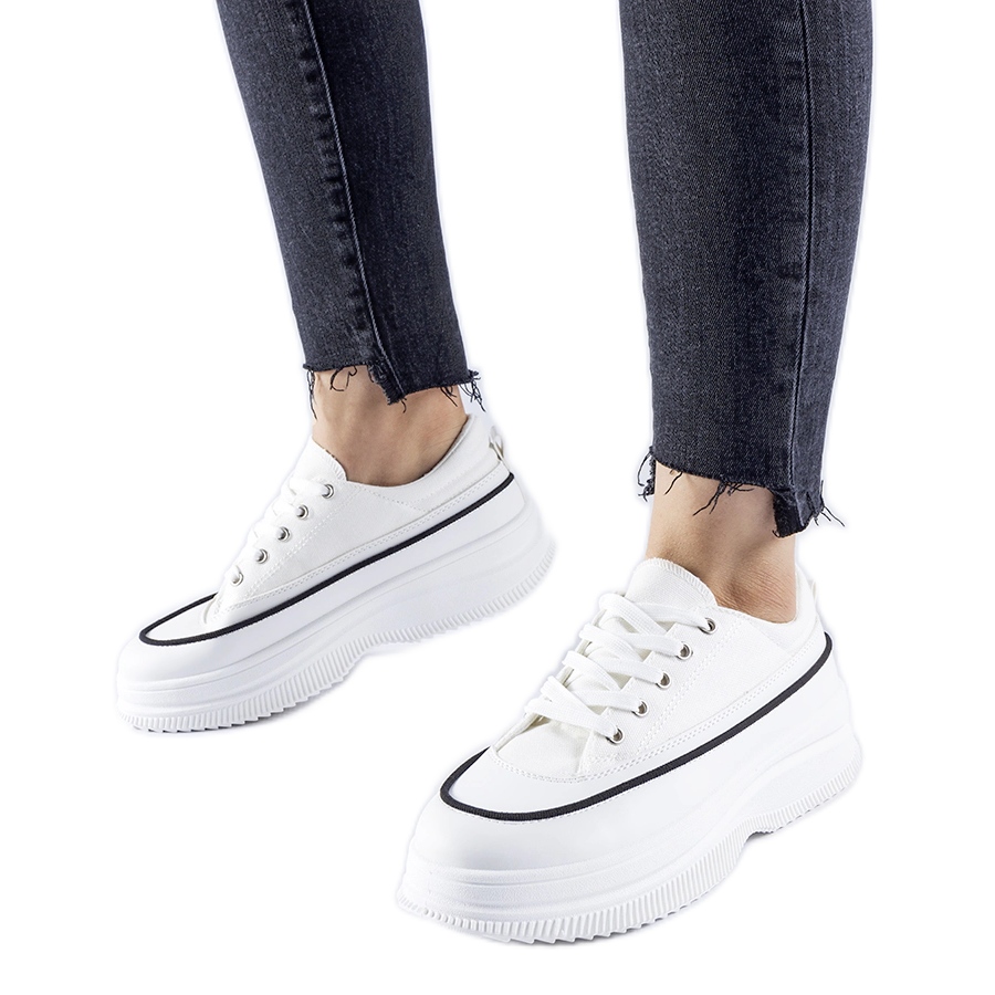 Yksityiskohdat: Valkoiset lenkkarit Plesio-alustalla valkoinen