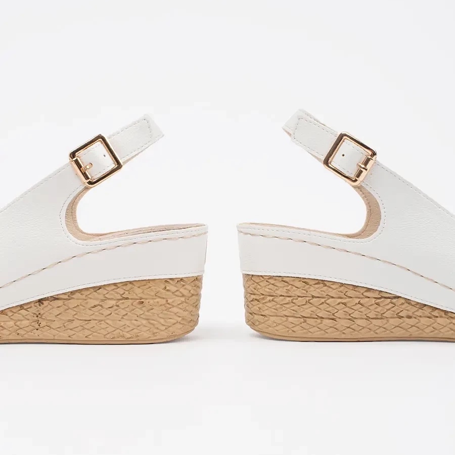 Avokorkotaso tekee näistä sandaaleista ilmavat ja mukavat, mikä tekee niistä loistavan valinnan lämpimiin päiviin. Klassinen varvaston espadrillien leikkaus lisää keveyttä, ja valkoinen väri sopii täydellisesti niin arkeen kuin tyylikkäämpiin asuihin. Sandaaleissa on tyylikäs, rento tyyli, mikä tekee niistä universaalin asusteen erilaisiin tilaisuuksiin - juhlista arjen retkiin.