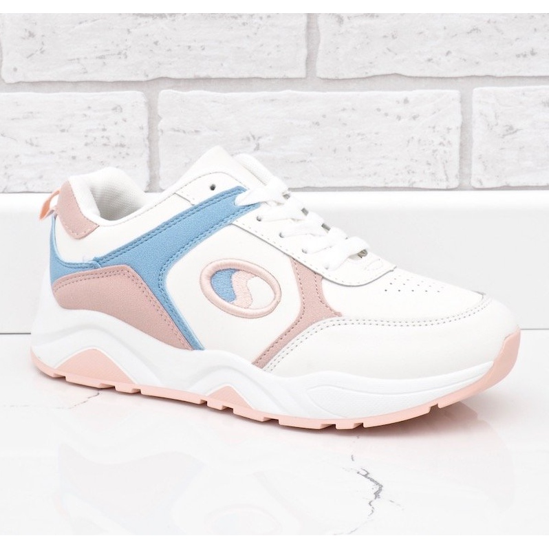 Yksityiskohdat: Valkoiset muodikkaat urheilukengät BO-186 valkoinen vaaleanpunainen