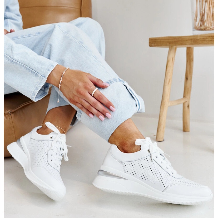 Löydä ainutlaatuinen tyyli ja mukavuus valkoisilla nahkaurheilukengillä muusta merkinnästä. Täydellinen moderni naiselle, GD-XF-114 -malli yhdistää yksinkertaisuuden ja tyylikkyyden, mikä tekee siitä loistavan valinnan keväällä ja kesällä. Nämä kengät erottuvat klassisesta, valkoisesta väristä, jonka voit helposti mukautua moniin tyyleihin - sekä jokapäiväiseen että tyylikkäästi.