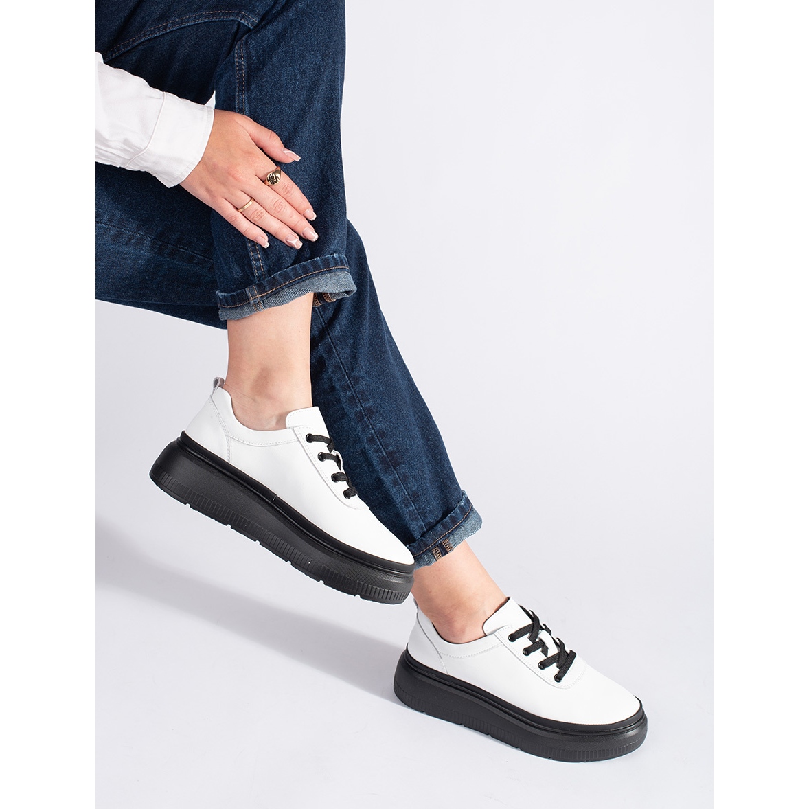 Inna marka Valkoiset nahkakengät mustalla alustalla valkoinen