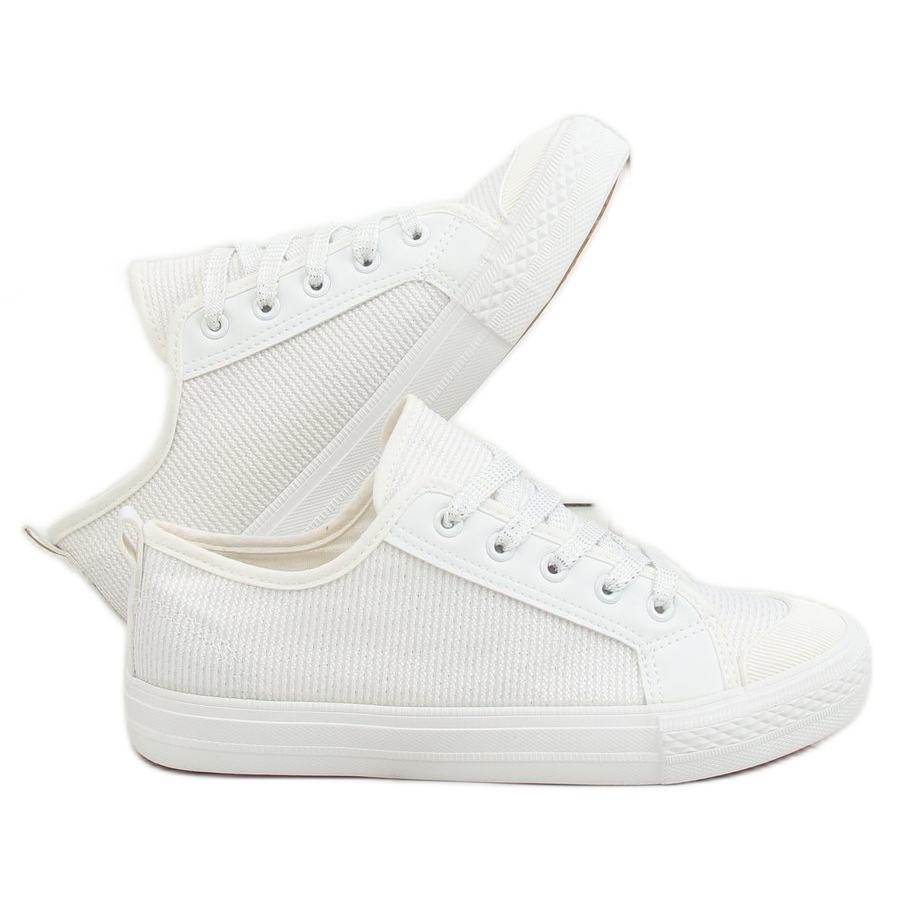 Esittelemme valkoiset naisten tennarit BOK-1138 White - täydellinen valinta mukavuutta ja tyyliä arvostaville naisille! Nämä nauhalliset tennarit ovat täydellinen valinta klassisten tyylien ystäville, jotka haluavat lisätä tyyliinsä hieman omaperäisyyttä. Niiden ainutlaatuinen aksentti on hienovarainen, kiiltävä hopeanvärinen lanka, joka kiinnittää huomiota ja antaa kengille ainutlaatuisen luonteen.