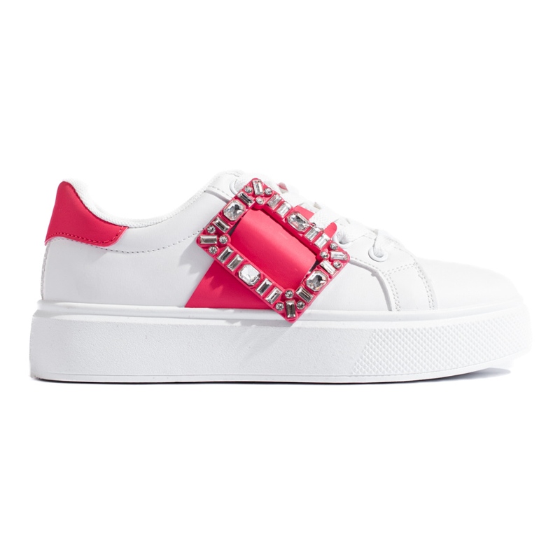 Yksityiskohdat: Valkoiset naisten lenkkarit vaaleanpunaisella Shelovet-sisäkkeellä valkoinen