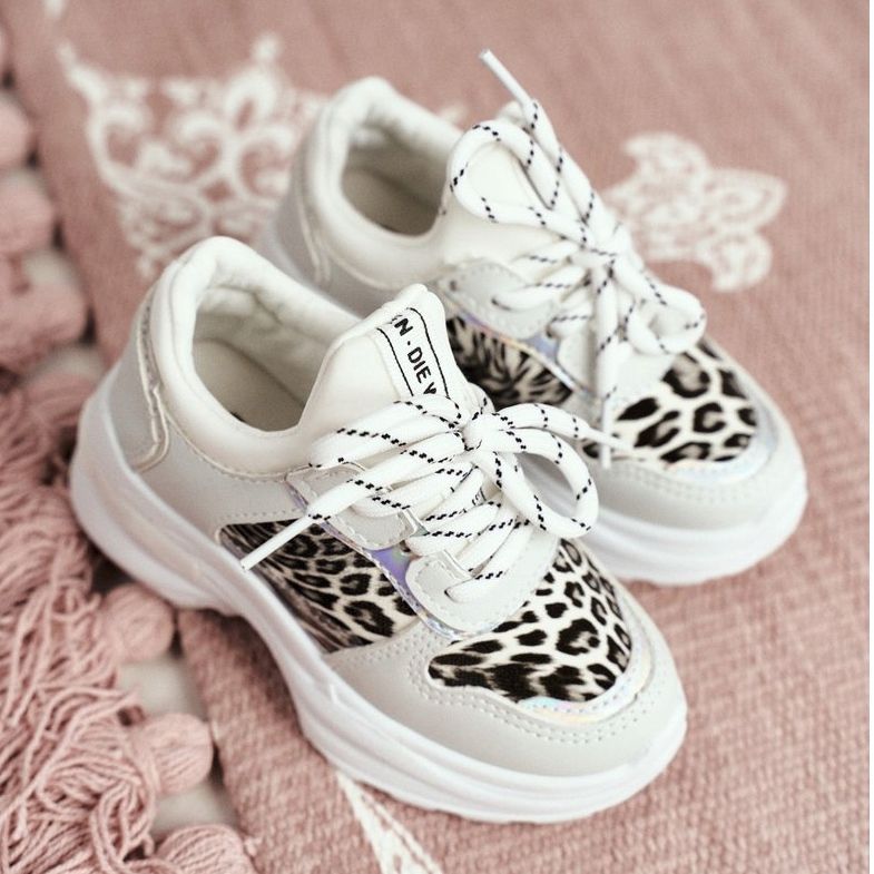Esittelemme FRROCK-lasten urheilujalkineet tyylikkäässä leopardikuviossa! Nämä kevyet ja mukavat kengät, valkoiset harmailla yksityiskohdilla, ovat täydellinen valinta jokaiselle mukavuutta ja tyyliä arvostavalle tytölle.