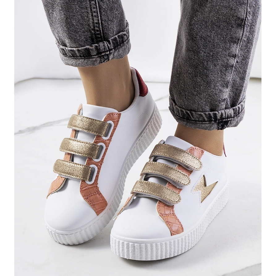 Valkoiset lenkkarit Pitmerden (malli M-973)-Ihanteellinen pohja kesälle, rento tyylit. Klassisen valkoisen korkealaatuisesta ekologisesta nahasta valmistettu ylempi on vaihdettu käärmeen teeman vaaleanpunaisten inserttien kanssa, jotka antavat kengille tyylikkään, naisellinen hahmon. Matala, mukava ja käytännöllinen - loistava joka päivä.
