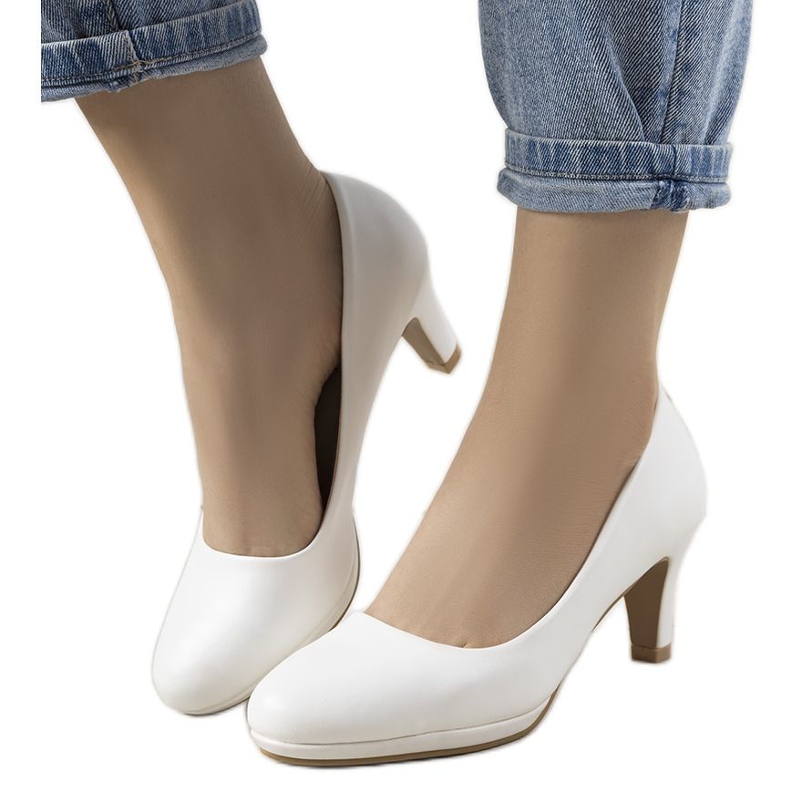 Yksityiskohdat: Valkoiset pumput stiletto-kantapäässä eko-nahkaa Fink valkoinen