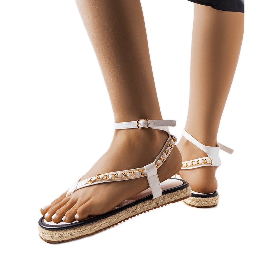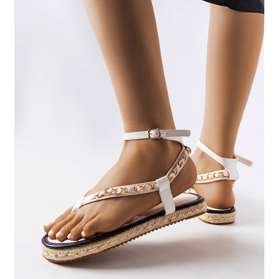 Yksityiskohdat: Valkoiset sandaalit koristeltu Varieur-ketjulla valkoinen