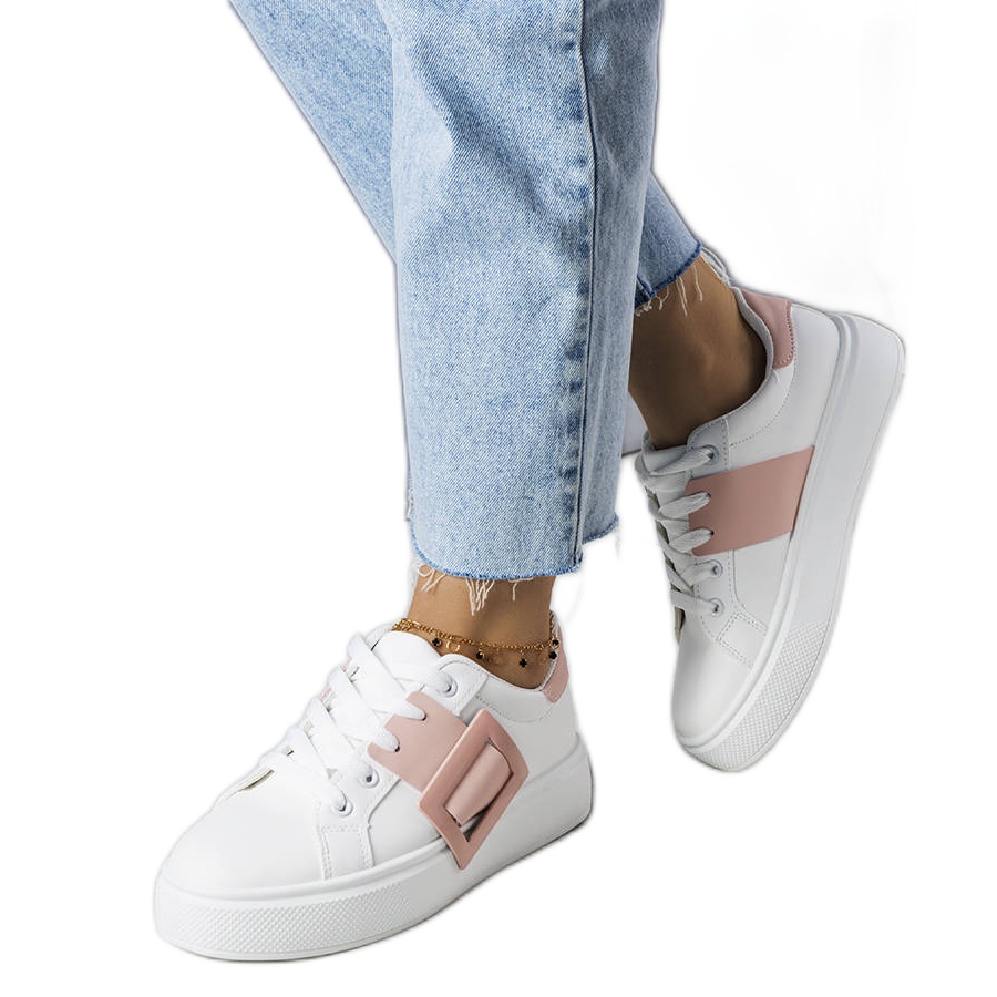 Valkoiset lenkkarit, joissa on vaaleanpunainen Toni -solki - malli la813
