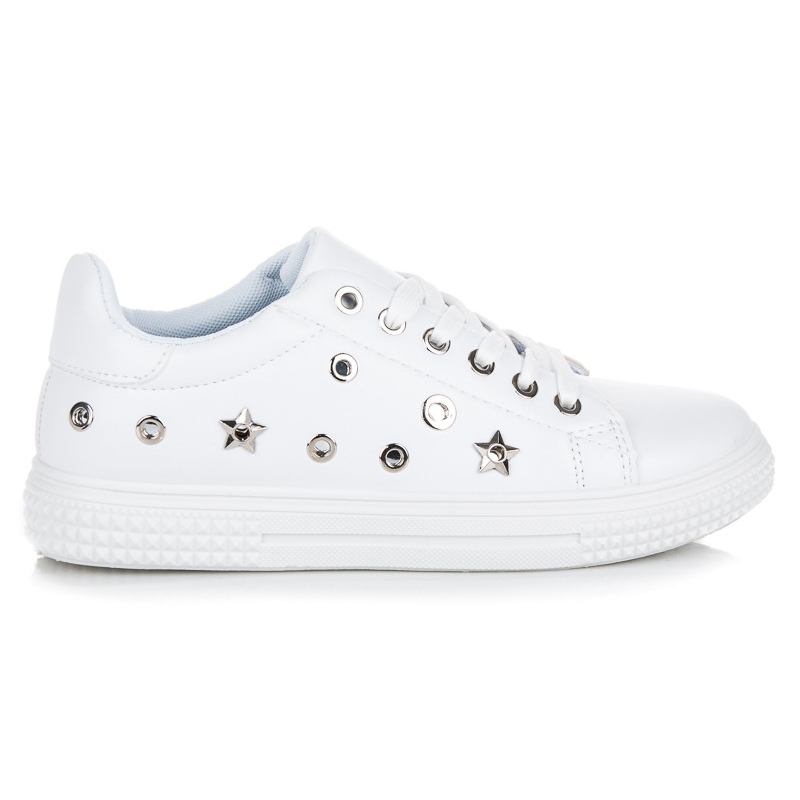 White Stars -lenkkarit ovat täydellinen valinta jokaiselle aktiiviselle naiselle, joka arvostaa muodikasta ulkonäköä ja mukavuutta. Näissä klassisissa urheilukengissä yhdistyvät ajaton tyyli ja monipuolisuus, mikä tekee niistä täydelliset jokapäiväiseen muotoiluun. Niiden kaunis valkoinen väri sopii harmonisesti erilaisiin asuihin, ja koristeellisten strassien ja tähtien muodossa olevat koristeet lisäävät niihin luonnetta ja ainutlaatuista tyyliä.