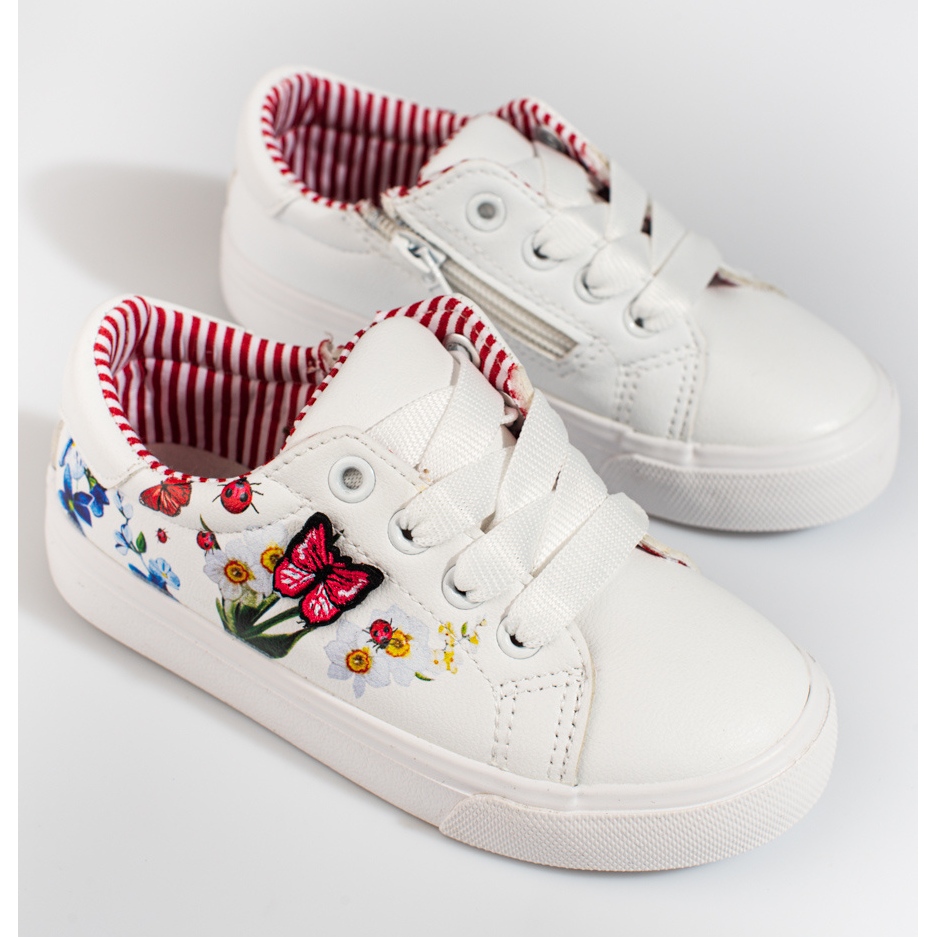 **W. Potockin valkoiset tennarit tytöille, joissa on perhonen**
