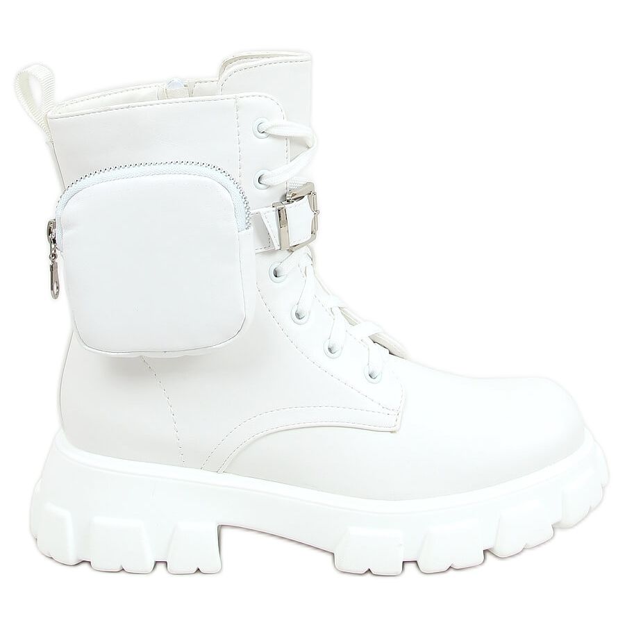 Tutustu muotiin ja mukavuuteen pussilla varustetuilla työntekijöiden saappailla, valkoinen 7705 White! Nämä naisten nauhalliset nilkkurit ovat yhdistelmä uusimpia trendejä ja arjen toimivuutta. Irrotettavan pussin ansiosta saat sekä tyylikkään aksentin että käytännöllisen elementin pienten tavaroiden säilyttämiseen.
