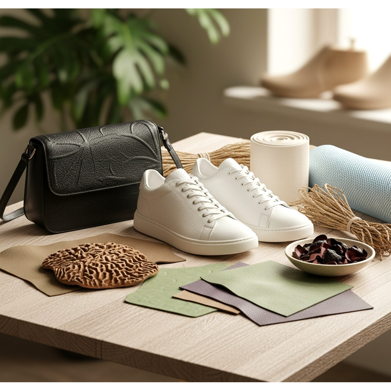 Myös kasvimateriaalit ovat yhä tärkeämpi rooli. Ananaslehtinahka (Piñatex) on saamassa tunnustusta suunnittelijoiden keskuudessa ympäri maailmaa. Samoin myseelirihmasto, kaktus (Desserto-tuotemerkki) tai viinirypäleen kuori (viininvalmistuksen jäte) ovat esimerkkejä luovista ja kestävistä ratkaisuista. Nämä materiaalit eivät ole pelkästään eläimille, vaan myös ympäristölle ystävällisiä, koska ne perustuvat usein maatalousjätteisiin.