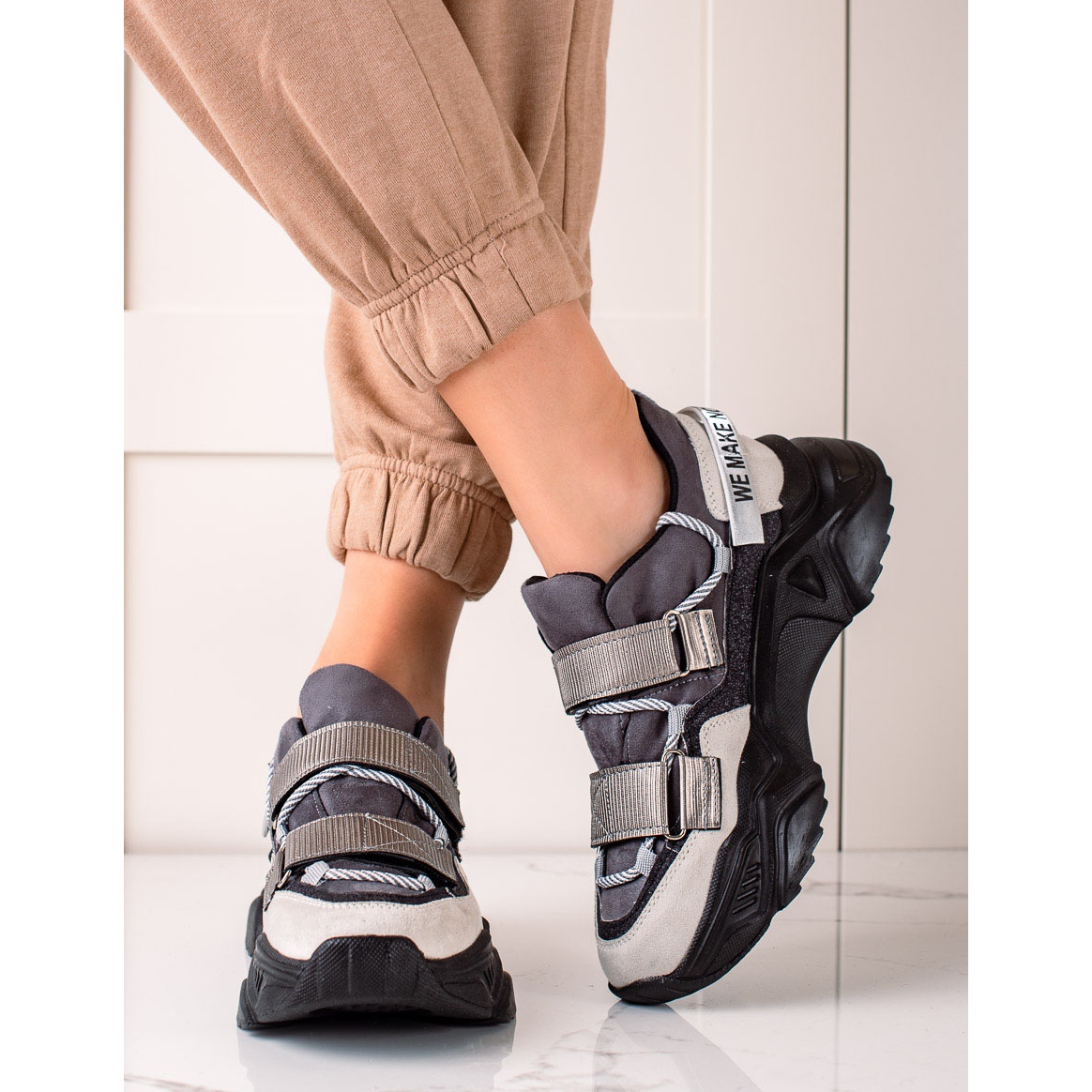 Yksityiskohdat: TRENDI Velcro -muoti lenkkarit beige musta harmaa