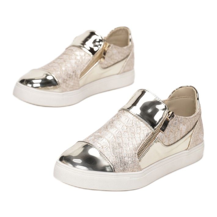 Löydä eleganssia ja mukavuutta Vices Q49-37 GOL 36/41 -kenkien avulla, jotka täydentävät täydellisesti jokaisen naisen vaatekaappia. Näissä kauniissa kullanvärisissä tyylikkäissä kengissä on pyöreä kärki, joka korostaa kauniisti jalan siluettia ja saa ne näyttämään erittäin naisellisilta.