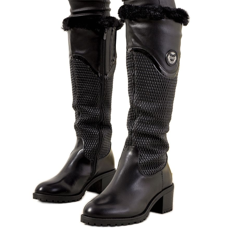 Vicenza-eristetyt mustat turkissaappaat ovat ihanteellinen valinta naisille, jotka arvostavat eleganssia ja arjen mukavuutta. Nämä korkealaatuisesta ekonahasta valmistetut saappaat on kudottu, mikä antaa niille ainutlaatuisen luonteen. 5,5 cm korkea tolppa korostaa kauniisti figuuria ja varmistaa samalla vakauden ja mukavuuden käytössä.