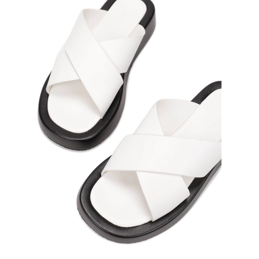 Valmistettu korkealaatuisesta ekologisesta nahasta, sekä ulkoosa että sisäosa takaavat käyttömukavuuden koko päivän. Tämä materiaali ei ole vain esteettinen, vaan myös ympäristöystävällinen. Synteettisestä materiaalista valmistettu pohja takaa keveyden ja kestävyyden, mikä tekee varvastossoista ihanteellisen valinnan kesäpäiviin.